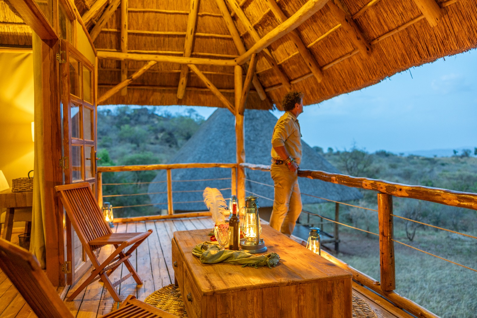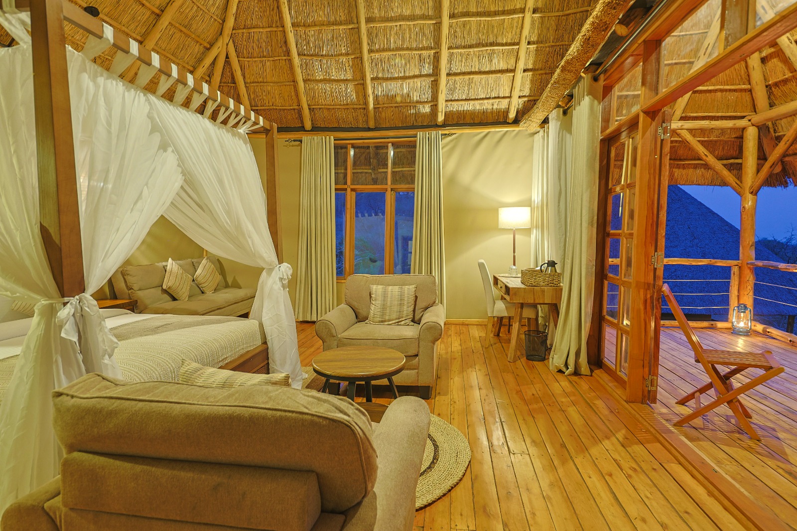 Each Safari Charlet at Kidepo Wilderness has a comfortable verandah, ideal for wildlife and game viewing or reading your favorite book after a dusty safari.
